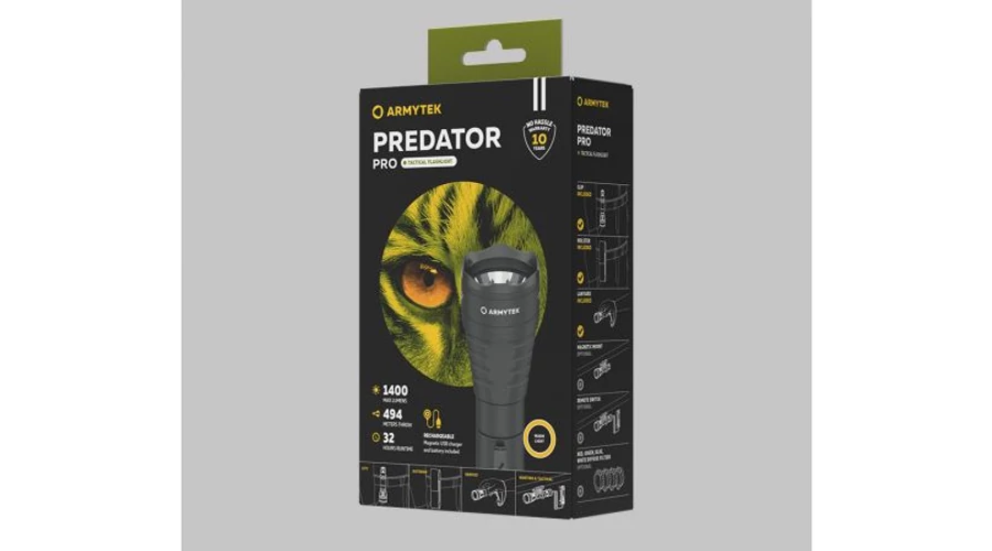 A Predator Pro egy taktikai modell, keskeny, lenyűgöző vetőtávolsággal, speciális feladatokhoz és vadászathoz. Az új generációs zseblámpa megőrizte az előző verzió legjobb tulajdonságait, miközben csúcstechnológiás frissítést kapott.