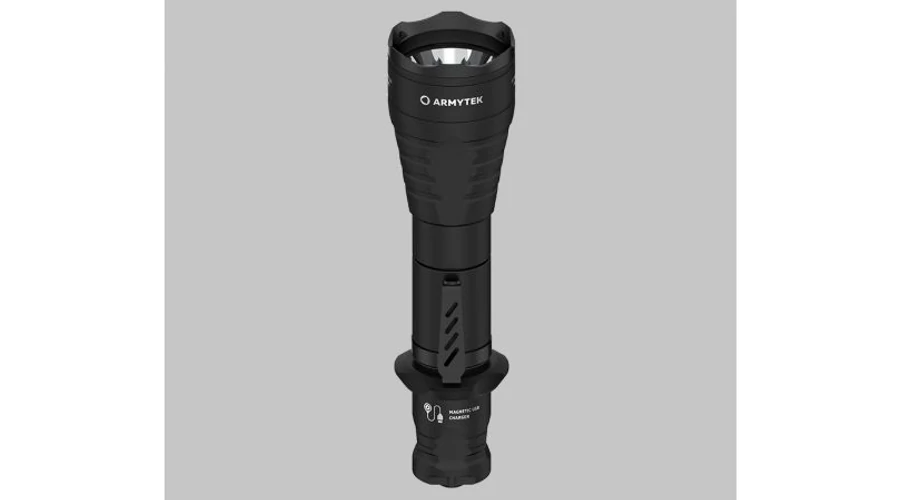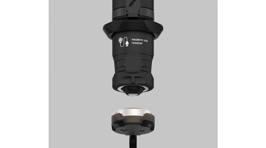 A tiszta központi folt minimális oldalsó kiömléssel lehetővé teszi a tárgyak megvilágítását akár 494 méter távolságból. Ideális 100-300 méteres távolságból történő használatra. A zseblámpához egy gyors mágneses töltő és egy 18650 Li-Ion 3500 mAh akkumulátor tartozik. A dobozból kivéve használható, és bármilyen USB tápforrásról tölthető: fali vagy autós adapterről, valamint Powerbankról.