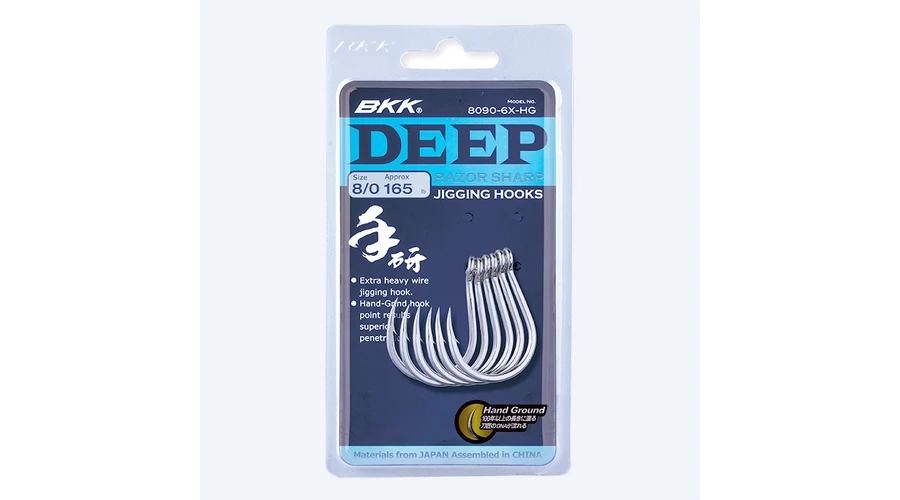 A BKK Deep jig horgot, nagyon nagytestű mélyvízi halfajok gyors jigeléssel történő horgászatára tervezték. A BKK a legjobb horoghegy kialakítását Hand Ground technológiát alkalmazza, amely 25%-kal növeli a horog átütőerejét, ezt kombinálva a kis horogszakál kialakítással, amely tovább csökkenti az akasztás pillanatában létrejövő ellenállást - betapadást horog és a csontos ellenállást, ezzel is biztosítva az akasztás sikerét.