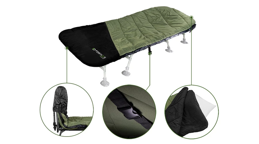 A vázat alaposan párnázott, steppelt matrac borítja, melynek gyapjú felülete meleg és puha tapintású. Ezenkívül egy tartós 600D szövet borítja. A fejtámla extra gyapjú borítást kapott, a középső rész pedig alulról megerősített ,a matrac keménysége egy gumipánttal állítható.