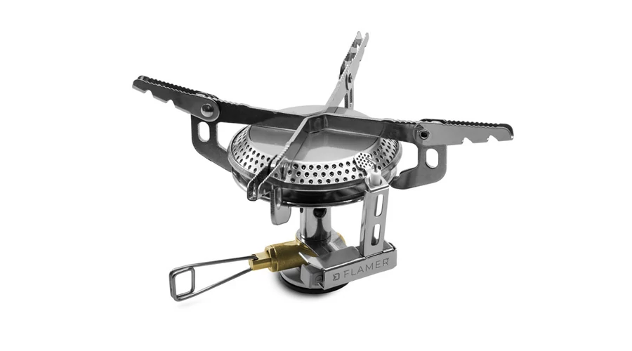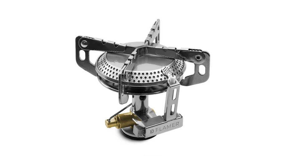 A tűzhely kompatibilis a propán-bután gázpalackokkal, amelyek 7/16-os menetes önzáró szeleppel vannak felszerelve. A lehető legjobb kezelhetőség érdekében a FLAMER praktikus gázáramlás-szabályozással és piezoelektromos gyújtással van felszerelve. Ennek köszönhetően nem lesz többé szüksége gyufára vagy öngyújtóra.