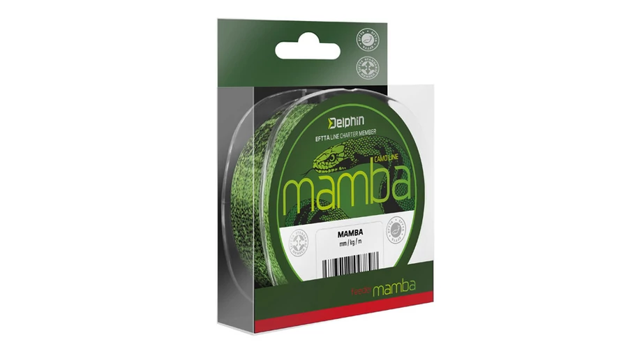 Kiváló pontyozó damil egyedi 3D mintázattal. A MAMBA kiváló tulajdonságokkal rendelkezik, mint a jó csomó tűrő képesség és szilárdság. Az egyedi álcázó kivitelének köszönhetően gyorsan beleolvad a környezetbe. A nagyon sima és finom felületnek köszönhetően távdobásra alkalmas. Ezeknek a tulajdonságoknak köszönhetően a Delphin MAMBA univerzális damilnak számít, amely minden helyzetben megállja a helyét.