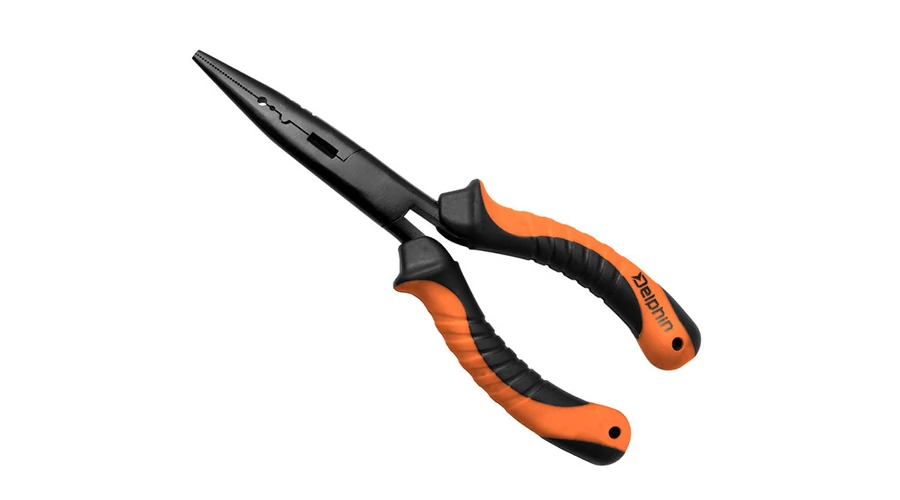 A Delphin MULTI egy hosszú horgászfogó, mely a ragadozó halak szájából való horogszabadításra szolgál, ahol a klasszikus érfogó már kevés. A hossza 18 cm. A fogó belső felülete elegendően érdes, hogy meg tudja fogni a nagyobb dupla vagy hármas horgokat. Ezen felül beépített vágóval és 9 mm szélességű krimpelő pofával van felszerelve. Magas széntartamú acélból készülnek, mindkét kar narancssárga és fekete színű műanyaggal van bevonva, mely jól látható és biztosítsa a jó fogását. A fogó mindkét karján található nyíláson zsinórt tud áthúzni. A MULTI fogóval ezentúl gyorsan és biztonságosan ki tudja szabadítani horgát a hal szájából.