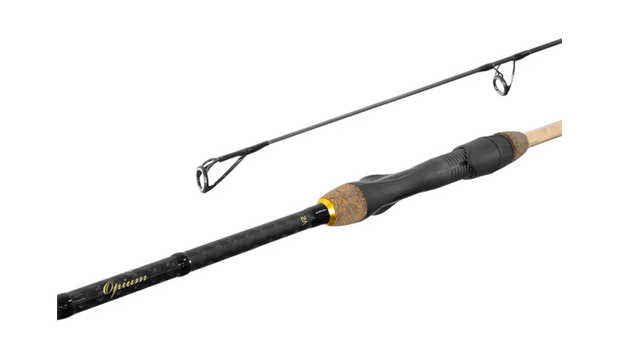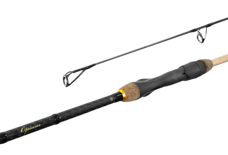 Az OPIUM botok első sorozatának sikere után sem aludtunk el a babérjainkon, ezért létrehoztuk a jobb, szebb még jobb minőségű sorozatot az OPIUM V2. Újra a megbízható 30T karbon blankra alapoztuk a bottestet, melynek parabolikus akciója segít a kapitális halak fárasztásakor, de az erő tartalékok ellenére élvezni fogja a kisebb halak fárasztását is. A 3lbs dobó terhelés univerzális és a 30T karbon kombinációjával kivételes dobó és fárasztó akciójú botot hoztunk létre. Az OPIUM V2 botteste valamivel merevebb mint az elődje. A nyélnél egy ergonóm FUJI orsótartót használtunk RUBBER CORK részekkel kiegészítve, felette kézzel font mintázat van a karbon szalagon. A minőségi SEAGUIDE gyűrűsort használtunk SiC betéttel a 360cm és 390cm modelleknél a keverőgyűrű 50mm átmérőjű. Az összetételt fém gyűrűvel erősítettük meg, mely az összetételnek plusz szilárdságot add. A második bojlis OPIUM verziónál újra használtuk a kedvelt vékony ThinCORK-ot a hagyományos stílus kedvelőinek. Ez az anyag duplázott így nem kell félnie az ellenálló képességétől. A nyél még bronz kiegészítőkkel van ellátva és RUBBER CORK-ban végződik.