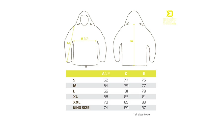 Az ujjvégek beépített rugalmas szalagokkal rendelkeznek a jobb vízkizárás érdekében. A kabát belsejében a lapockák között egy hálós panel is található a jobb szellőzést elősegítve. A PROOF kabát alsó részén műanyag rögzítőkkel ellátott húzózsinór található, amely lehetővé teszi a derék alatti rész megfeszítését. Mindkét oldalon tágas zsebek találhatók, hatékony burkolattal.