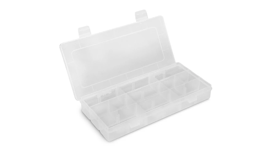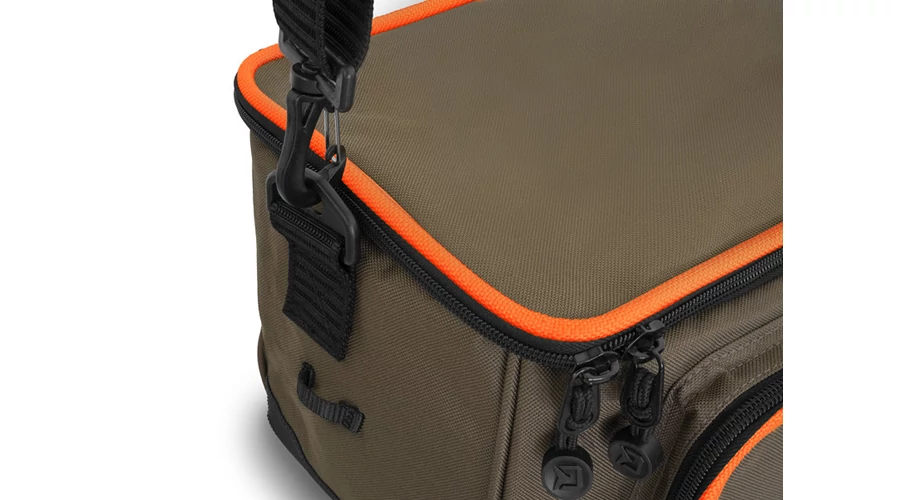 A táska minőségi, tartós anyagokból készül. Ráadásul az alsó részt gumiréteg védi, hogy távol tartsa a talaj nedvességét. A fő tároló részben egy átlátszó műanyag doboz található, állítható rekeszekkel, így mindig tudni fogja, mi van benne. Ez a doboz alkalmas műcsalik, feeder kosarak, vagy egyéb apró kiegészítők tárolására.