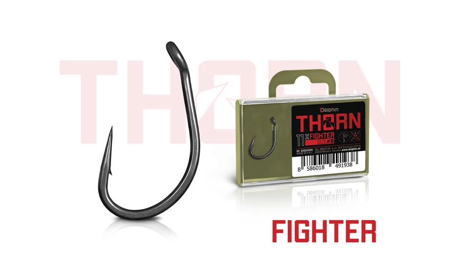 A THORN Fighter kompromisszumok nélküli horog, amelyet a legnehezebb körülményekre terveztek. A durva huzalnak köszönhetően, amelyből készült, kiváló szilárdsággal rendelkezik, amely eleve elrendeli az akadályokkal teli vizekben vagy a folyókon történő használatra. A Fighterrel a legnagyobb kihívások várnak rád, amelyek során biztos lehetsz benne, hogy nem hagy cserben a harc során.