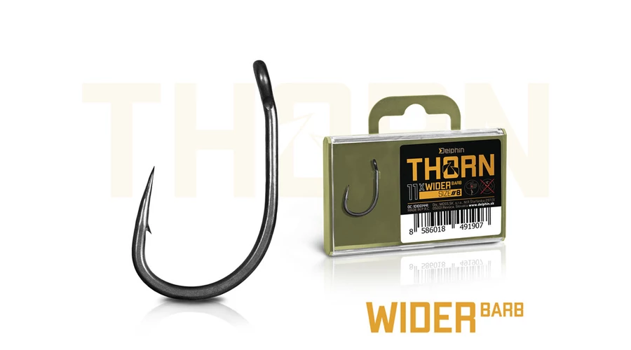 A THORN Wider különleges a már legendás wide gape formájának köszönhetően. Ez egy horog, amelyet szélesebb ív és egyenes szár jellemez. Ezeknek a paramétereknek köszönhetően nagyon univerzális és megbízható horog, amely különféle szerelékekhez és csalikhoz használható.