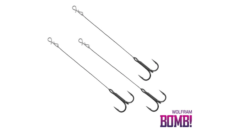 Kész pergető előke Twisto RIGS Wolfram mely volfrám huzalból előke teherbírása 15kg és minőségi hármas horogból a Mustad-tól készült.A legrövidebb 6cm hosszú előke melyen 8-os nagyságú hármas horog van. Ez a kisebb műcsalikhoz készült. A középső 10cm hosszú előke 4-es méretű hármas horoggal van ellátva. A leghosszabb előke ebből a sorozatból 12cm és 1-es méretű hármas horoggal van ellátva. A volfrám előkét kihasználja olyan helyeken ahol fen áll az előke átharapás lehetősége például a csukánál, illetve ahol szüksége van nagyobb hármas horogra és hosszabb előkére. A Twisto RIGS-et nemcsak a TWISTO termékekkel tudja használni, hanem klasszikus BOMB! jigeknél gumihallal is. A csomagolásban 3 darab található.