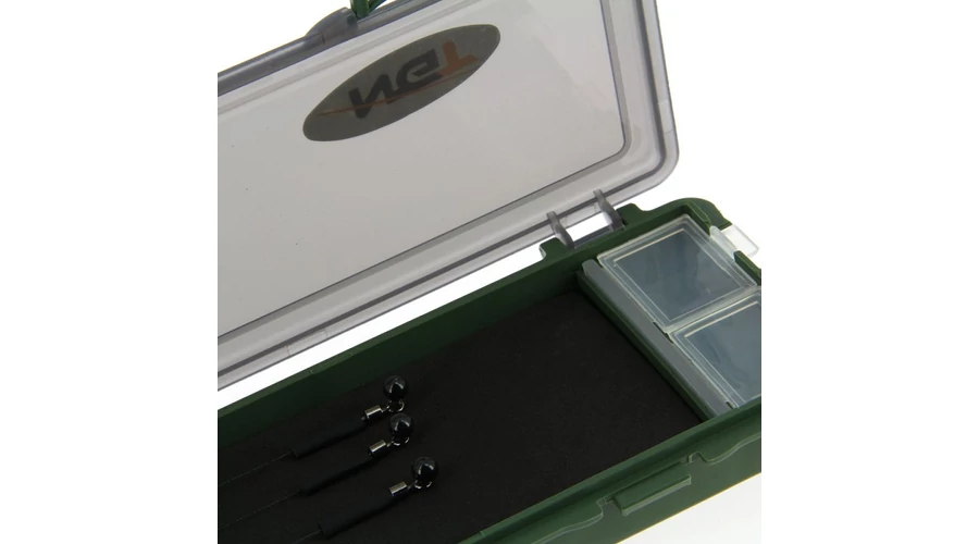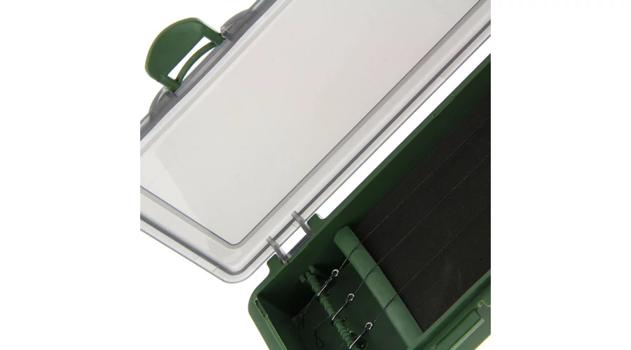 Az előkéket feszesen, és gubancolódás mentesen tárolhatjuk a dobozban lévő, bélet szivacs és a hozzátartozó tűk segítségével.
