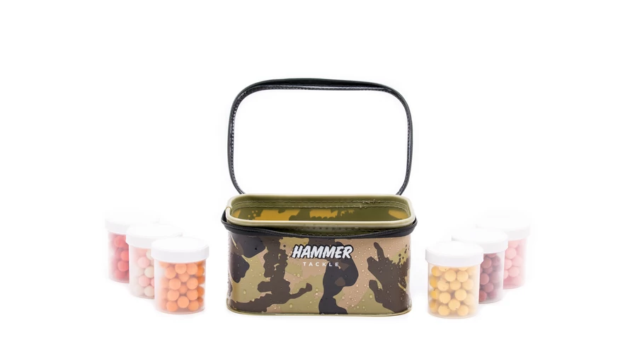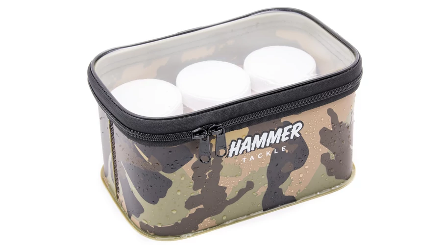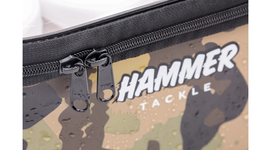 A kis HammerBags átlátszó fedelet kínál. Kisméretű tárgyak, például vezetékek, előugró ablakok, horogkészletek, tartalék orsók, valamint olyan dolgok, amelyek nem kapcsolódnak közvetlenül a halászathoz, például mosó- vagy dohánytermékek, kulcsok és pénztárca praktikus tárolására. A fantáziád számára nincs korlátozás!