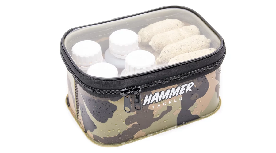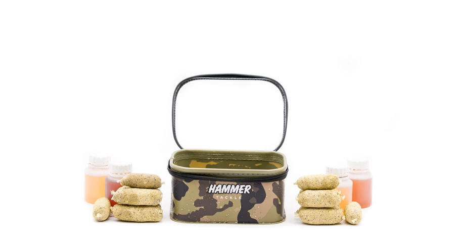 A kis HammerBags átlátszó fedelet kínál. Kisméretű tárgyak, például vezetékek, előugró ablakok, horogkészletek, tartalék orsók, valamint olyan dolgok, amelyek nem kapcsolódnak közvetlenül a halászathoz, például mosó- vagy dohánytermékek, kulcsok és pénztárca praktikus tárolására. A fantáziád számára nincs korlátozás!