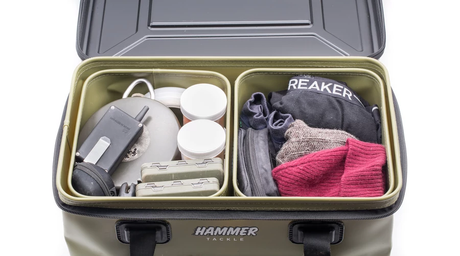 A HammerNizer zárt rekesz könnyen eltávolítható és szükség esetén kimosható. A méret úgy van kialakítva, hogy a betéteket könnyen be lehessen helyezni és eltávolítani a táskából. Akár a felszerelés, a csali felosztására, akár kétféle cucc szállítására egy zsákba szervezve: A lehetőségek számosak.