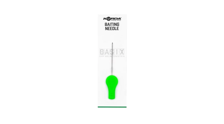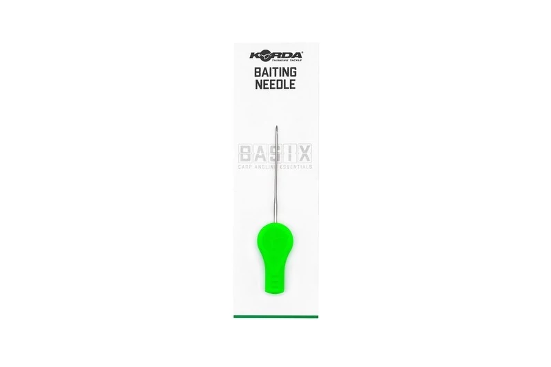 A Korda BASIX Baiting Needle - csalitű, a legtöbb csalival használható, mivel éles és erős, ami azt jelenti, hogy a legtöbb keményebb csalin át lehet fúrni anélkül, hogy attól félne, hogy a csali közben szétesik. A végén lévő „kampó” úgy lett kialakítva, hogy a hajszállat a helyén tartsa, miközben a csalit ráfűzi, annak veszélye nélkül, hogy a fonott anyagok megsérülnének vagy szétválnának, ami megnehezítheti a stopper behelyezését. Az élénkzöld fogantyú ergonomikusan lett kialakítva, és ha a földre ejtené, könnyen megtalálhassa. A krómozott tű tartósan lett kialakítva, és nem fog rozsdásodni.