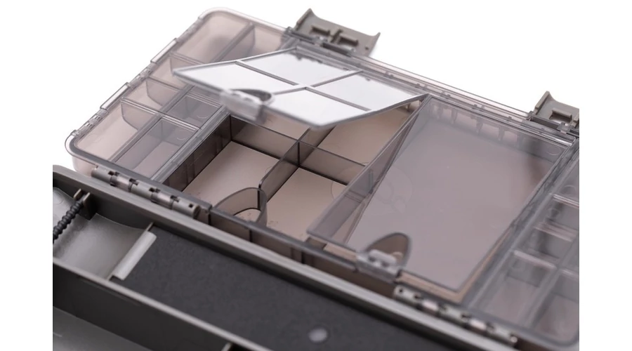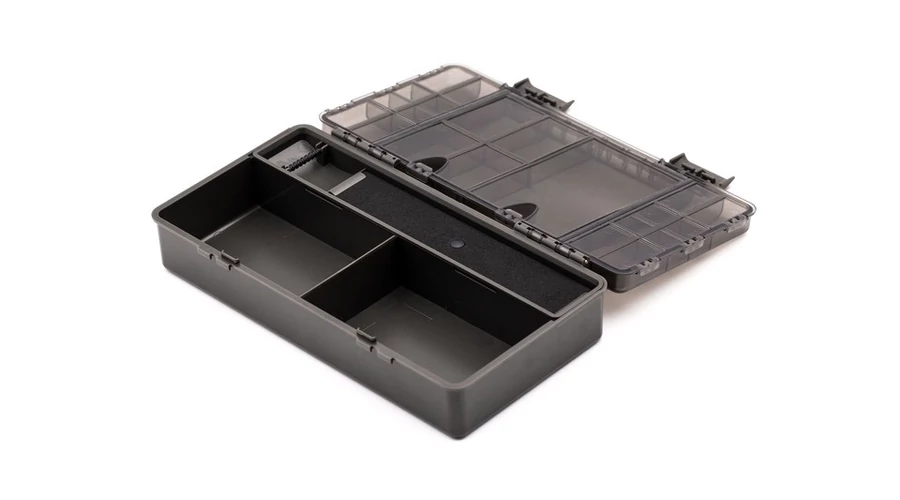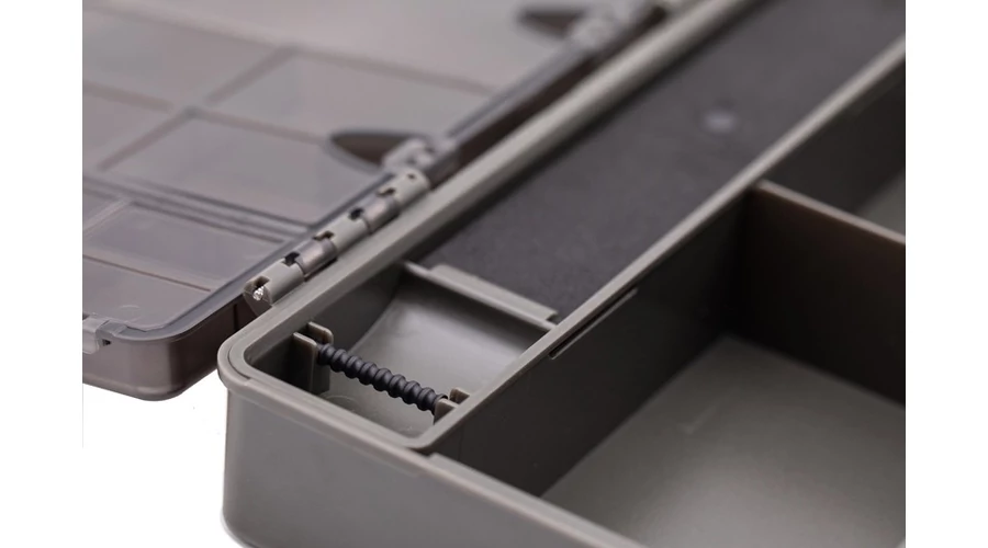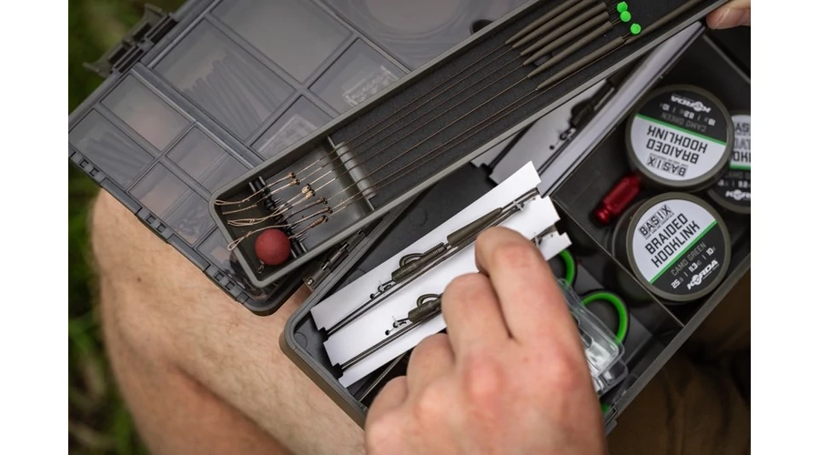 A Korda BASIX Tackle Box - szerelékes doboz, úgy tervezték, hogy rengeteg tárolási helyet kínáljon az összes szükséges szerelék készítés eszközeinek, ugyanakkor megkönnyíti a rendezésüket és megtalálásukat, amikor arra szükség van. Ütésálló, strapabíró műanyagból készül, áttetsző fedéllel, hogy bele láthasson. A fedél teteje tartalmaz egy centit, amely lehetővé teszi a szerelékek pontos mérését és két külön zárható résszel van rögzítve, hogy a szállítás során ne tudjon kinyílni. A BASIX Tackle Box fedelének belsejében 21 különféle méretű, külön zárható rekesz található, amelyek tökéletesen alkalmasak olyan tárgyak tárolására, mint például ólomklippek és forgók. A doboz belsejében két nagy rekesz található, rögzített elválasztókkal, amelyek tökéletesen alkalmasak a szerelék eszközök, tekercsek és hasonlók tárolására. Emellett kivehető szerelék tárolót is tartalmaz, amely akár nyolc előre megkötött előkét (például a BASIX Ready Tied hajszálelőke) tárolására szolgál, és ez alatt van egy másik hosszú tároló rész is.