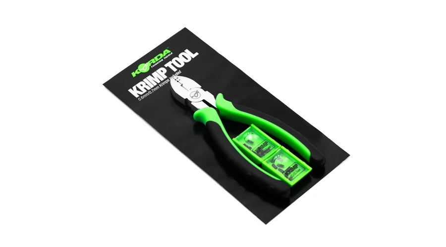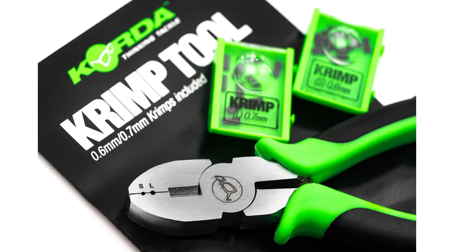 A Korda Krimping Tool krimpelő fogó, ez a rendszer segít Önnek gondos és pontos szerelékeket gyártani. Nagyon rövid előkéket, mint a Chod Riget vagy a Hinged Stiff Riget tud ennek segítségével könnyen elkészíteni. A szett tartalmaz egy Krimpelő fogót és 2 dobozt, az egyik dobozban kicsik és a másikban pedig nagy krimpek (hüvelyek) vannak.