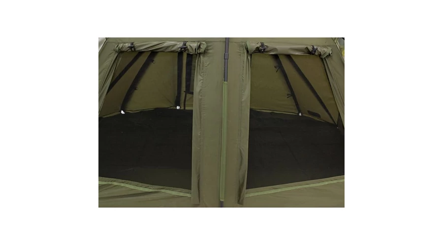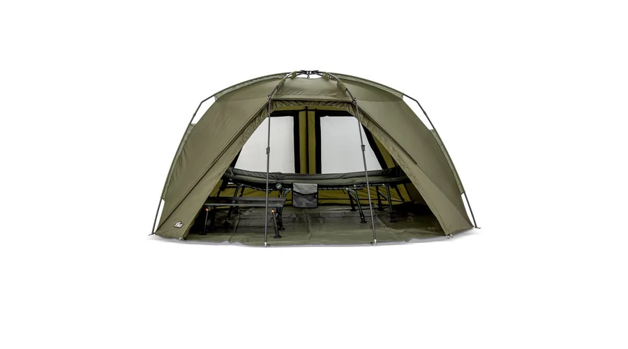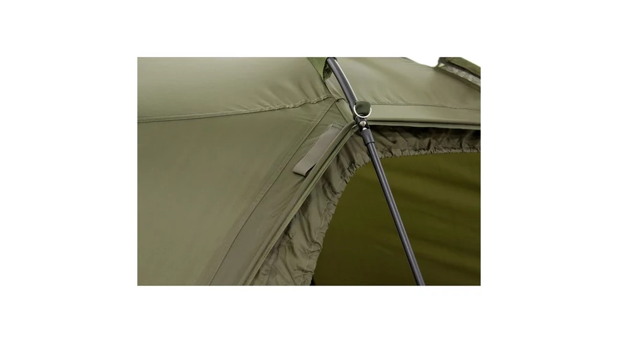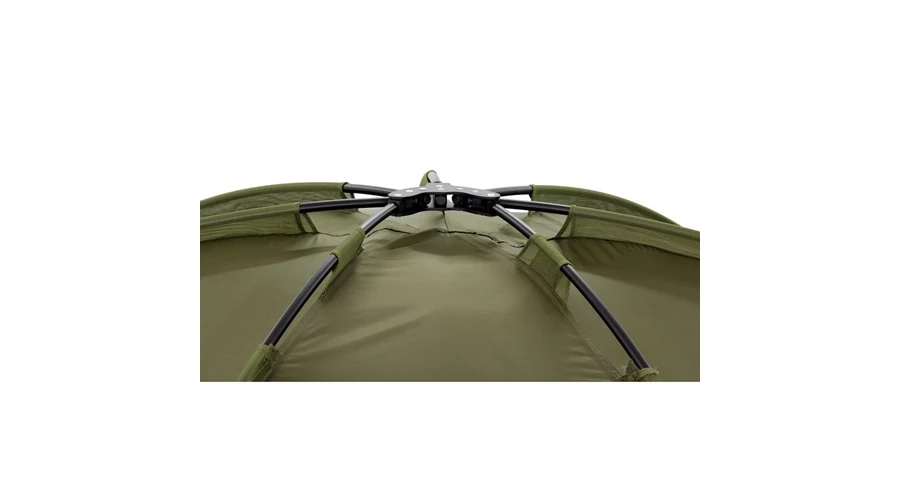 Az új konstrukciós elv sok időt takarít meg Önnek, és lehetővé teszi, hogy a horgászatra koncentráljon. Az egyes rudakat csak rövid ideig állítják össze és hajlítják szét legyező alakban, ekkor a bivvy szinte áll.