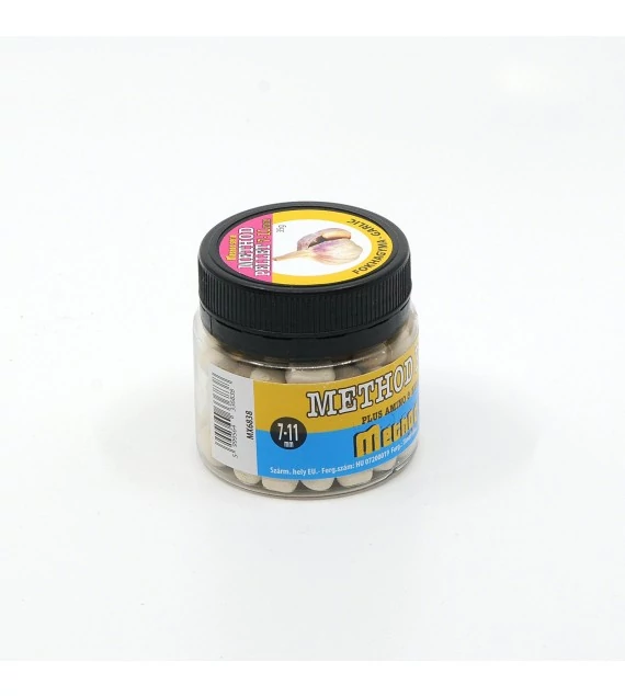 A Method Pellet az egyik leguniverzálisabb csali a kínálatunkban. A keszegféléktől egészen a nagytestű pontyokig mindenre sikeresen alkalmazhatjuk. Egy csomagolásba két különböző méret (7 és 11 mm) kerül ebből az élénk színű lebegő horogcsaliból. Leginkább method feederes horgászatoknál használhatjuk, de hagyományos fenekező módszerrel is kiváló lehet.