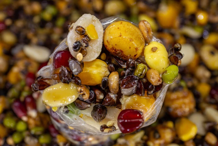 A „High Impact” Party Mixünk valószínűleg a leghatékonyabb magkeverék, amelyet jelenleg találhat. Összesen 15 (!) különböző részecskéből, dióból és hüvelyesből áll, a legnagyobb arányban kukorica (sárga, narancs és piros), tigrismogyoró, búza és kender. Ezen kívül a pontyok közé tartozik a földimogyoró, a mazsola és a csicseriborsó az édesszájúaknak.