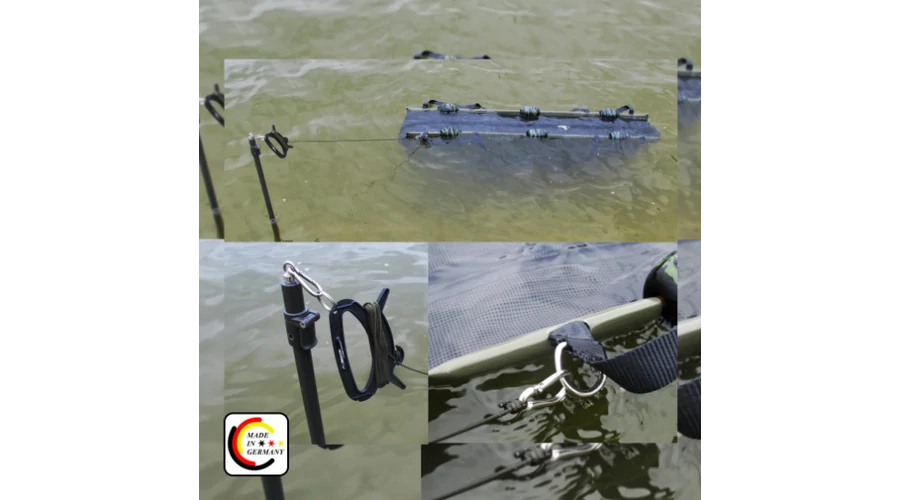 A nagyméretű rozsdamentes acélgyűrűnek köszönhetően a Sling & Carp Sack Holder egyszerűen felakasztható bármelyik bankstick adapteren.