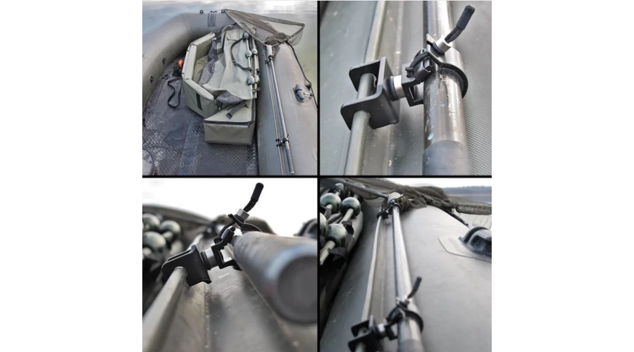 A Menetes Rögzítőkészlet egy felfújható csónakokhoz készült rögzítőadapter, amely a szokásos 3/8"-os menettel rendelkezik, így mindenféle bottartóval vagy kapásjelzővel kompatibilis. Ezáltal a felhasználási területe igen sokrétű! Úgy tervezték, hogy a Rod Safe-fel együtt használva optimálisan és biztonságosan rögzítse a merítőhálót a felfújható csónakhoz.
