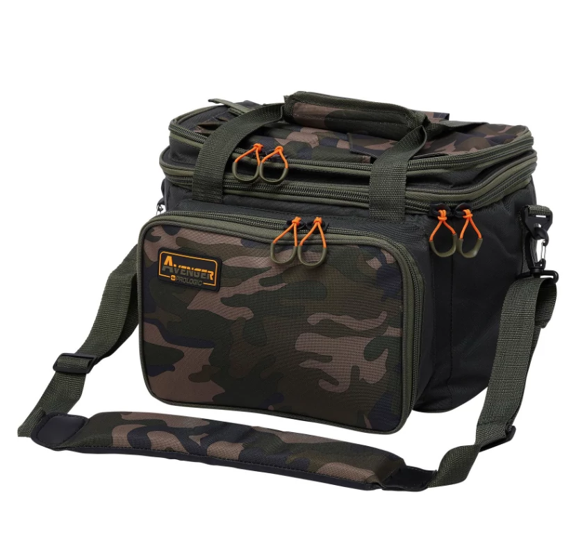 Az Avenger táskákat profi versenyhorgászok közreműködésével alkották, így minden igényt kielégít és megbirkózik minden lehetséges szituációval. Akár alkalmi horgászatokról, akár versenyszerű horgászatról van szó, az Avenger táskák megbirkóznak a kihívásokkal. A 600D vízálló és szakadásálló vászon felhasználásával készített táskák párnázott kialakítást kaptak, a stílusos megjelenésről pedig a sötétzöld szín és terepmintás díszítés gondoskodik. Az Avenger táskákat korrózióálló nagyméretű cipzárakkal látták el, amelyekhez Hi-Viz kihúzó fülek társulnak. A kényelmes hordozásról megerősített fülek és párnázott vállpánt gondoskodik.