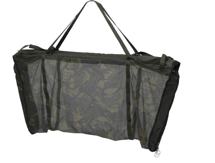 Camo úszó mérlegelő. Ideális a halak pihentetéséhez, miközben előkészíti a fényképezőgépet és a mérleget. 4 hordozófogantyút és 2 mérlegfogantyút tartalmaz. A puha terepszínű háló kiváló vízcserét biztosít a zárógyűrűs HD cipzárral.