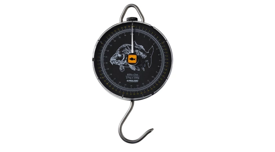 A Prologic Specimen Dial Scale 54kg analóg mérleg elengedhetetlen eszköz minden pontyhorgász számára. Amikor megfogsz egy hatalmas halat, annak gyors és pontos súlyának megismerése kulcsfontosságú - végül is minden pontyhorgász tudni szeretné, mekkora példányt fogott és fotózott le. A mérleg szerkezete erős testet és lencsét használ, és nagy horoggal van felszerelve a méréshez és a háromlábúra való felakasztáshoz.