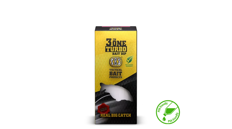 A 3 in 1 Turbo Bait Dip elnevezés nem a véletlen műve, hiszen 3 féle alkalmazási mód is rendelkezésünkre áll a termék használatakor. Első és egyben a legelterjedtebb felhasználási mód, amikor a felkínált csalit a folyadékba mártjuk. A sűrű folyadék a vízbe érkezés után folyamatosan oldódódva képez illatfelhőt, mely kb. 30–40 perc elteltével fog teljesen leoldódni a csaliról, majd elterül körülötte! Második felhasználási mód, amikor PVA hálóra juttatunk a folyadékból. Vízbe érkezve a háló feloldódása után a folyadék a vízközt fog elterülni. A harmadik felhasználási mód, ha a csalizásra szánt bojliból néhány szemet a dipben hagyunk. A dip hihetetlen módon megkeményíti a golyókat. Minél tovább hagyjuk őket a sűrítményben, annál keményebb és aromásabb horogcsali lesz az eredmény! Az SBS 3 in 1 Turbo Bait Dip az egyik legnépszerűbb és legszélesebb körben használható termék, melyet sikerrel alkalmaznak a finomszerelékes és a nagyhalas horgászok is. Akár élő csalit, vagy kukoricát is ízesíthetünk vele! Az Eurostar bojlikkal azonos ízesítésekben kapható, PVA barát termék!