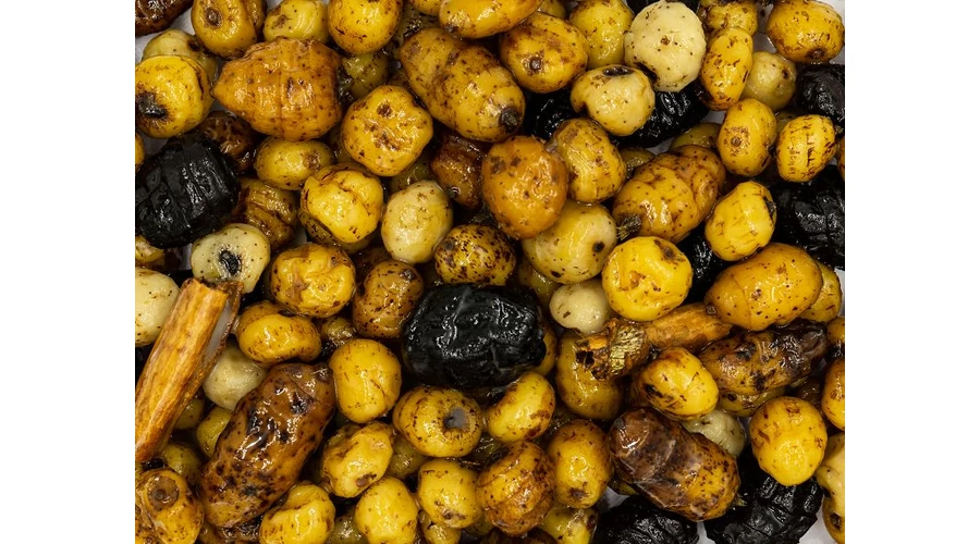 Gazdag szénhidrátokban, fehérjékben, cukrokban és vitaminokbanA megfelelően előkészített tigrismogyoró egy rendkívül fogékony csalétek. Keverékünk a legjobb spanyol fekete, fehér és barna tigrismogyoróból áll. Már vitaminokban, gazdag tejporban és betainban áztatják őket, hogy képes legyen sok vonzerőt és aminosavat felszívni. Ezután a tigriseket ebben a tömítőanyaggal töltött oldatban főzzük, és rengeteg idő áll rendelkezésükre ahhoz, hogy saját gyümölcsléjüket húzzák.