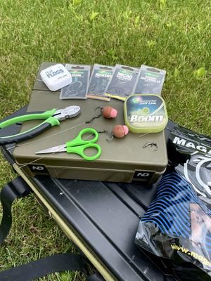 Az előkéhez egy 2-es méretű korda Kranket, korda spinner swivel xx forgót használtam, amire egy L-es méretű kickers-t tettem. A boom előkét pedig 0,50-es fluorocarbonból krimpleltem.