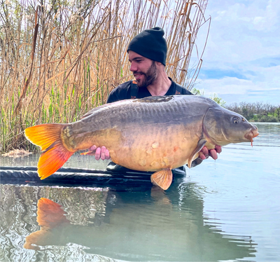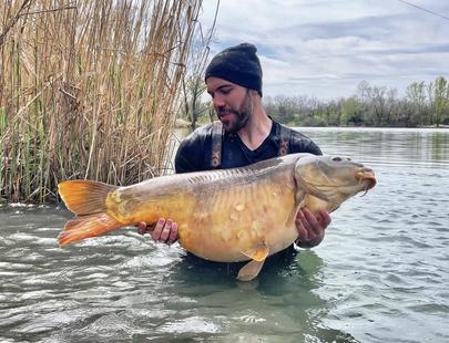 Kora délután éppen egy másik hal fotózását kezdtük el, amikor a partszéli botra is megérkezett az első kapás.Viszonylag hosszabb fárasztás után, hagytuk a halat pihenni a merítőben amíg befejeztük a képeket és csak utána láttam, hogy egy testesebb hal pihen ott mint amire számítottam. Áttettük a halat egy mérlegelőbe és kivittük a partra megmérni. A mérleg 21,8kg-ot mutatott.