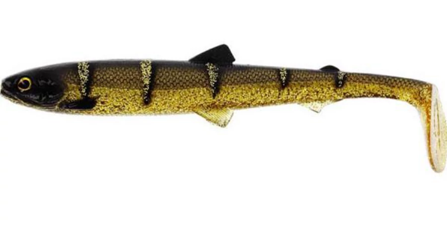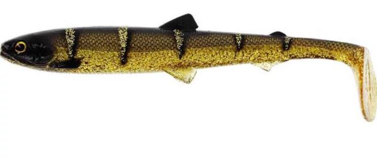 Torpedó alakú test kecsesen elvékonyodik és így csatlakozik bele a nagyméretű csapott ovális farokba. Ez meg is alapozza a gumi mozgását, széles farokcsapások magukkal húzzák a testet, ami így folyamatosan villogtatja a hasát. Amit még lassú sebességnél is előjön. Szokták mondani, hogy a részletekben bújik meg a lényeg, a háton apró bordázat fut végig, és domború pikkelyek, amik apró rezgésekkel egészítik ki a „csalogató” erőt.
